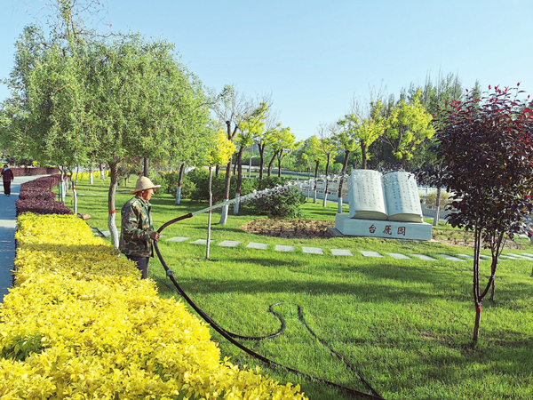 6月2日,五臺縣住建局園林處對全縣四大公園的綠化帶開始澆灌,以保證93.34公頃的喬木、灌木順利度過干燥期,為創(chuàng)建國家園林縣城提供綠色保障。圖為臺虒公園進行夏澆。(金俊賢攝)