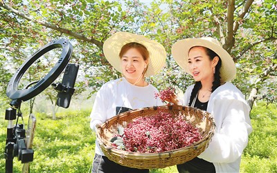 今年,甘肅省隴南市武都區(qū)的百萬(wàn)畝花椒喜獲豐收,隴南市相關(guān)部門(mén)及時(shí)組織本土電商人才深入田間地頭,通過(guò)電商平臺(tái)和直播帶貨方式助農(nóng)銷(xiāo)售。圖為日前,網(wǎng)絡(luò)主播在武都區(qū)郭河鄉(xiāng)候家彎村利用智能手機(jī)直播推介花椒。李旭春攝(人民視覺(jué))
