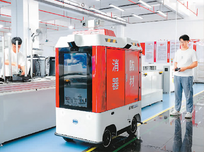 福建省福州市倉山區(qū)大力發(fā)展以智能制造為主導(dǎo)的新一代信息技術(shù)產(chǎn)業(yè),通過人才引進、科技創(chuàng)新、強化金融服務(wù)和落實財稅等惠企政策,積極打造數(shù)字經(jīng)濟核心產(chǎn)業(yè)集聚區(qū)。圖為技術(shù)人員在福建漢特云智能科技有限公司生產(chǎn)線上調(diào)試消防智能巡邏機器人。新華社記者 魏培全攝