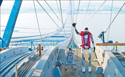“相信在不久的將來,機(jī)器人會替代部分橋梁工程的人工操作環(huán)節(jié)。”中交二航局燕磯長江大橋項(xiàng)目技術(shù)負(fù)責(zé)人羅航說,未來借助機(jī)器人完成巡檢,能大幅降低人員的勞動強(qiáng)度。(韓 鑫)