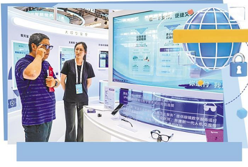 觀眾在云南昆明舉行的2025年國(guó)家網(wǎng)絡(luò)安全宣傳周配套活動(dòng)上體驗(yàn)智能眼鏡。新華社記者 彭奕凱攝