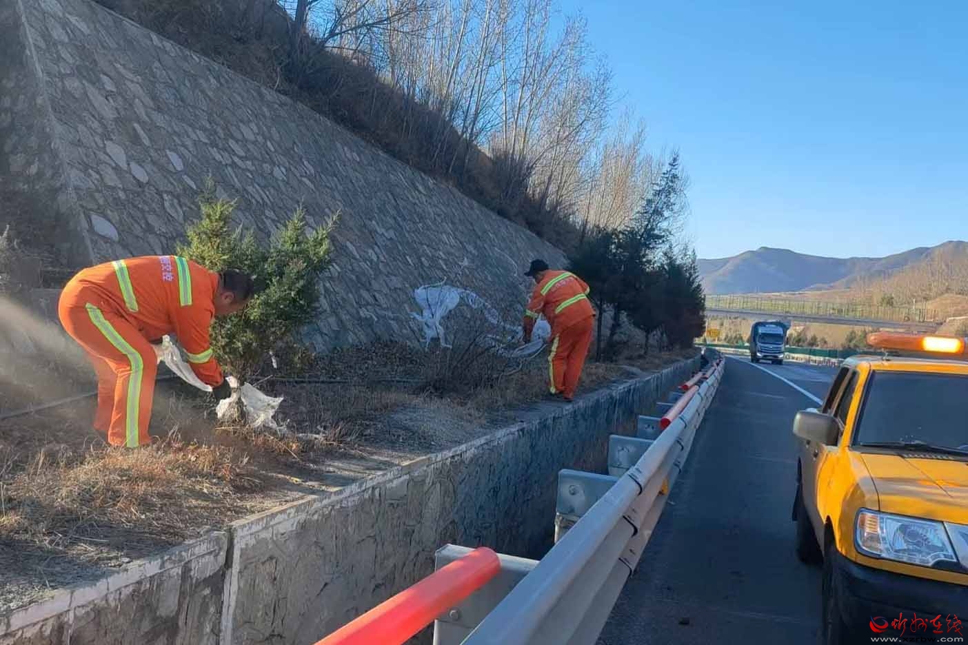 深化日常養(yǎng)護(hù),提升道路“顏值”。常態(tài)化開展路域環(huán)境整治,重點(diǎn)加強(qiáng)服務(wù)區(qū)出入口、匝道等關(guān)鍵區(qū)域治理,對(duì)路面拋灑物做到“隨見隨清”,確保路域環(huán)境整潔有序。加強(qiáng)道路綠化精細(xì)養(yǎng)護(hù),對(duì)中央分隔帶苗木進(jìn)行補(bǔ)植更新,及時(shí)清理路肩枯樹、死樹,全面提升道路綠化景觀效果與通行視覺感受。