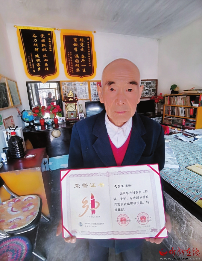 出生于1937年的戎榮義老人人生跌宕起伏:學(xué)業(yè)優(yōu)異卻沒(méi)上過(guò)大學(xué),教學(xué)優(yōu)秀卻扛過(guò)鋤頭,老來(lái)當(dāng)村官百姓稱贊,守護(hù)紅色舊址贏得身心健康,如今背不駝、腰不彎、腦不亂,特別是炯炯有神的眼睛,讓誰(shuí)也想不到他已是86歲的耄耋老者。