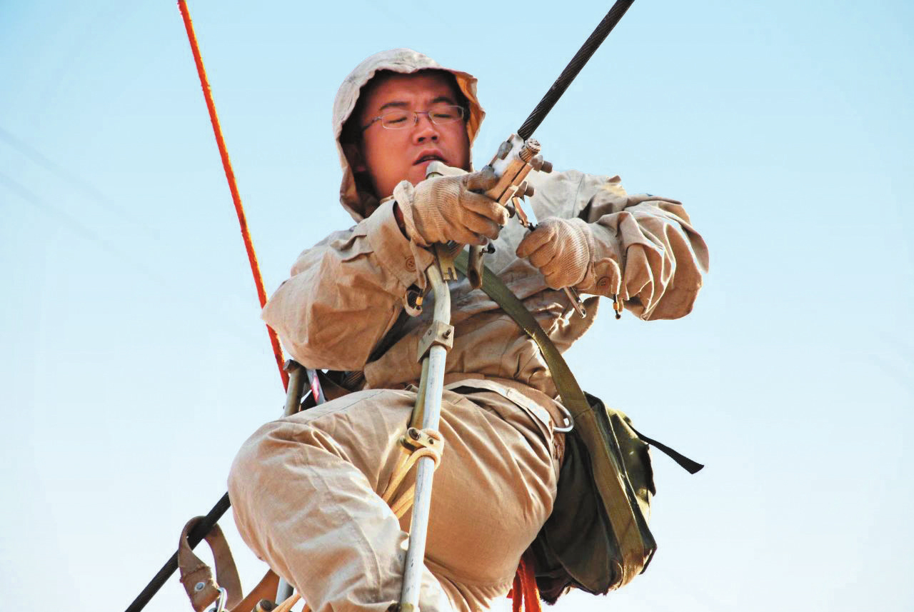 機(jī)會都是留給有準(zhǔn)備的人。上班第9個年頭,張杰第一次參加行業(yè)技能比賽。在國網(wǎng)忻州供電公司帶電技術(shù)比武中,他不僅取得個人第一名的好成績,還和隊(duì)友共同取得了團(tuán)體第一名的成績。在國網(wǎng)山西省電力公司組織的帶電技術(shù)比武中,他連續(xù)三屆獲得團(tuán)體前三名、個人前六名的成績。憑借過硬的技能素質(zhì),張杰成為帶電班班長。2009年,向神池義井變電站供電的220千伏萬義線3號塔—4號塔間導(dǎo)線出現(xiàn)斷股情況,嚴(yán)重影響轄區(qū)人民生產(chǎn)生活。面對這一險情,張杰帶領(lǐng)班組人員迅速趕赴現(xiàn)場。該故障點(diǎn)距地面有40多米高,由于陣風(fēng)強(qiáng)、檔距大,別說處理故障,爬軟梯登高都比平時困難。此時,張杰第一個換上工作服,爬上軟梯,經(jīng)過多次嘗試,最終順利完成維修任務(wù)。