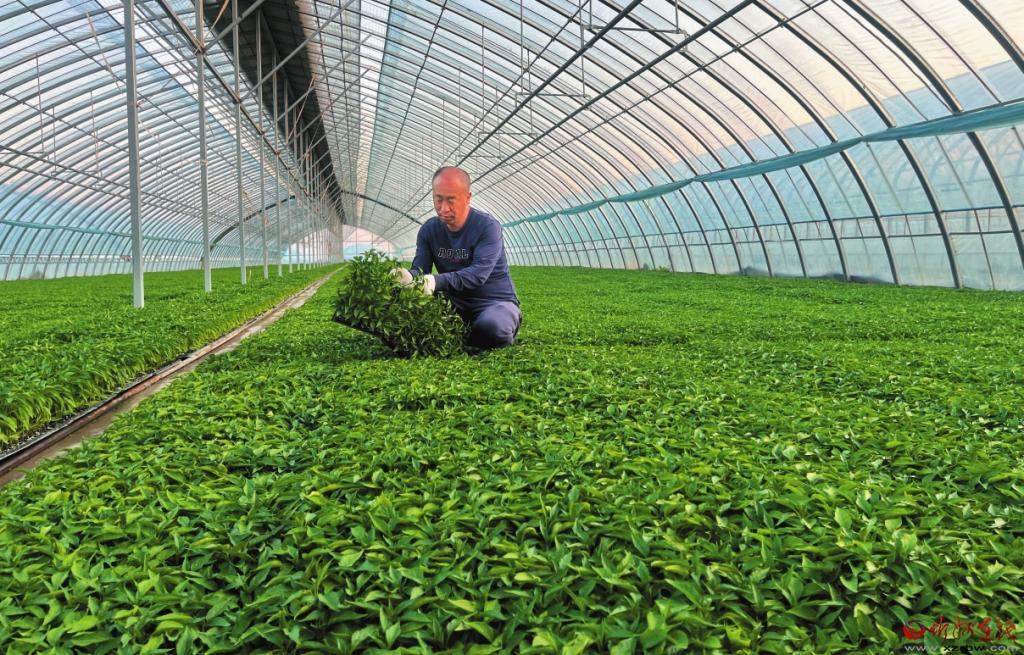 楊新軍是育苗能手,擁有10多年的育苗經(jīng)驗(yàn)。每年他大棚內(nèi)的辣椒苗早早就被周邊的種植戶預(yù)訂。辣椒苗出棚后,接著再回茬種植蔬菜,到11月結(jié)束。他種的辣椒苗如此暢銷得益于他是高城村第一個(gè)采用穴盤(pán)育苗技術(shù)的種植戶?!把ūP(pán)苗要比傳統(tǒng)苗的品質(zhì)好、成活率高、病蟲(chóng)害少,雖然育苗成本高一些,但是穴盤(pán)苗掛果率更高,采摘期也更長(zhǎng),很受市場(chǎng)歡迎?!辈捎眯录夹g(shù)后,楊新軍獲得了更大的經(jīng)濟(jì)收益。
