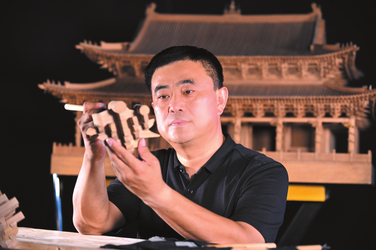 他秉承傳統(tǒng)又銳意創(chuàng)新,將不可移動的古建筑變?yōu)榭刹鹧b、可攜帶的微雕藝術品,讓世人通過微縮模型直觀了解山西古建筑風貌和歷史文明。他的作品曾在央視二套《一槌定音》、央視十套《地理中國》等平臺展示,部分作品被選為山西省外事禮品,通過國際交往傳播中華文化。