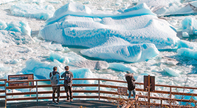 游客在阿根廷圣克魯斯省觀賞佩里托莫雷諾冰川。新華社/法新