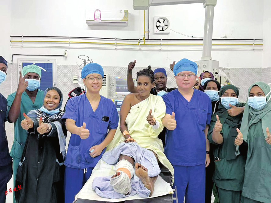 在麻醉的作用下,患者全程清醒、無痛。骨科醫(yī)生楊青則憑借熟練的手術(shù)操作,成功為她實施了創(chuàng)面皮膚軟組織清創(chuàng)術(shù)?;颊咝g(shù)后恢復(fù)良好,對醫(yī)療隊的精湛醫(yī)術(shù)和無私奉獻表示由衷的感謝。她表示,從未想過在吉布提能夠接受到如此卓越非凡的醫(yī)療服務(wù),感謝中國醫(yī)療隊的到來,為自己帶來了希望。