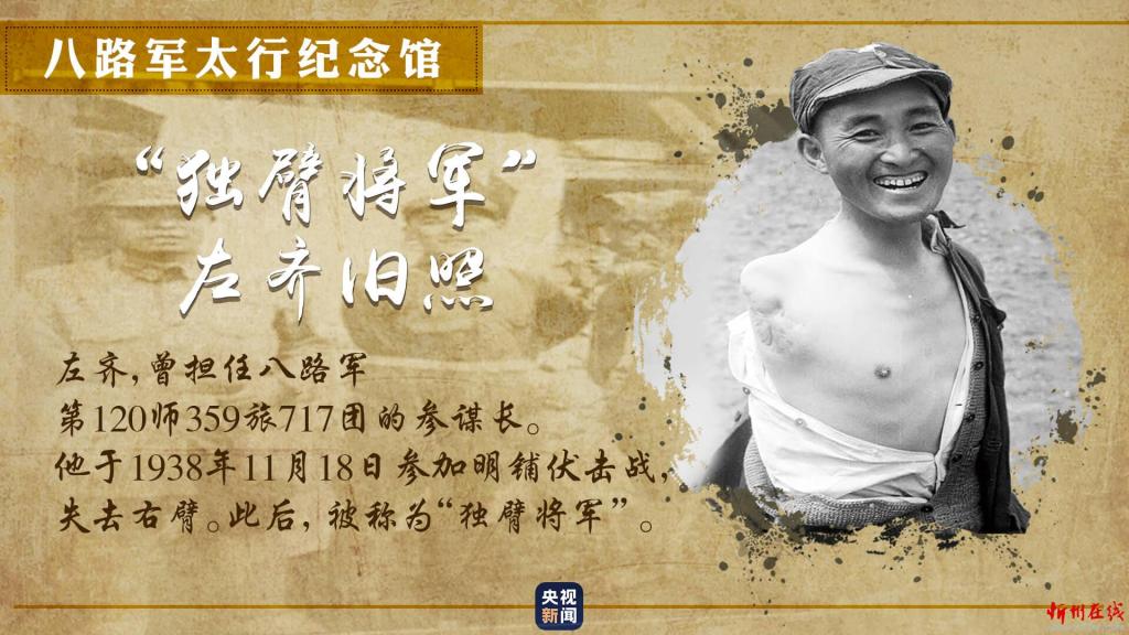 一張獨臂將軍的舊照,展現(xiàn)出八路軍為爭取民族獨立,不怕犧牲、不畏艱險的革命英雄主義精神。