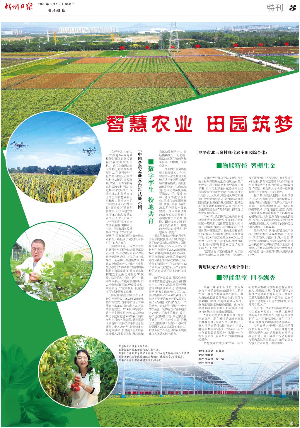 除了產(chǎn)業(yè)效益,園區(qū)作為省級科普教育基地的社會價值同樣突出。三年來,這里已累計開展勞動實(shí)踐活動80余場,接待參觀游學(xué)、科普實(shí)踐者超過3萬人次,其創(chuàng)新模式和育人成效獲得了國際訪問學(xué)者的高度評價,真正實(shí)現(xiàn)了從“藏糧于技”到“育人于田”的延伸。正如忻州市第十一中學(xué)的學(xué)生張一萌的感言:“在雜糧園區(qū),我認(rèn)識了家鄉(xiāng)的藜麥、黍子、谷子這些特色作物,真切感受到了我們山西‘小雜糧王國’的魅力?!边@座扎根于忻府區(qū)小檀村的智慧園區(qū),正以其蓬勃的生命力,持續(xù)為我市乃至全省的農(nóng)業(yè)現(xiàn)代化注入強(qiáng)勁的數(shù)字動力。