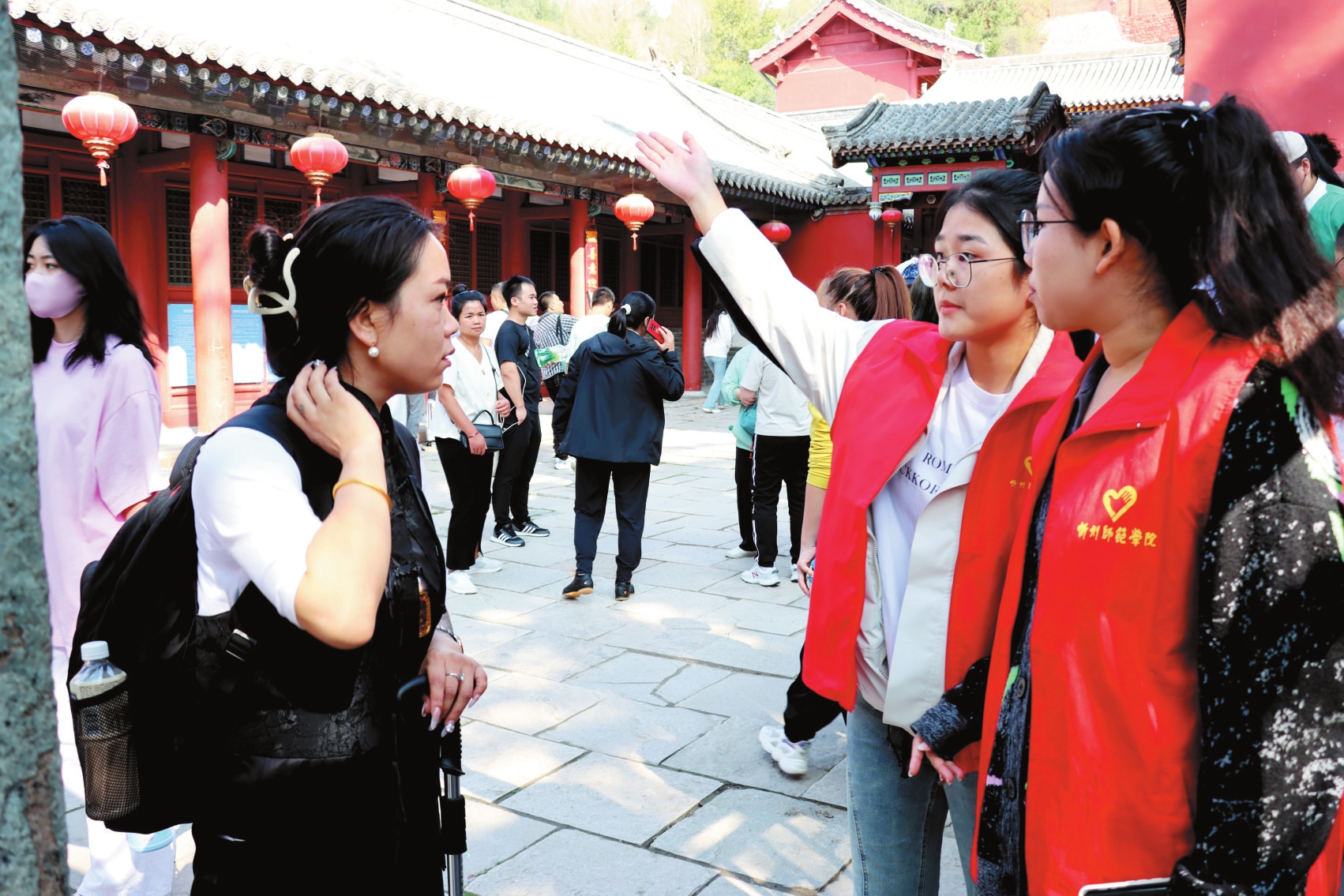 五臺(tái)山風(fēng)景名勝區(qū)志愿者積極開展文明實(shí)踐活動(dòng),為游客提供全方位服務(wù)。本報(bào)通訊員攝