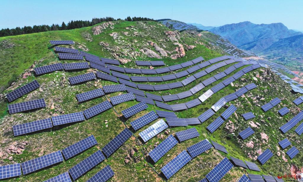 建在山坡上的原平市160MW光伏產(chǎn)業(yè)融合發(fā)展項目已并網(wǎng)發(fā)電。本報記者張存良攝