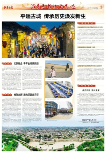 兩年來,晉中市和平遙縣牢記領(lǐng)袖囑托,全力推動(dòng)“遺產(chǎn)保護(hù)首善地、國(guó)際旅游目的地、晉商文化窗口地、特色產(chǎn)品展示地”建設(shè),在保護(hù)與傳承中交出了嶄新的答卷。