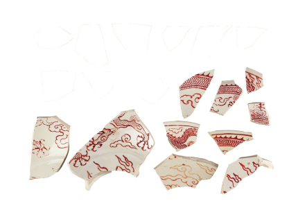 明代細白瓷礬紅彩龍紋殘片(部分)。本欄圖片均據(jù)新華社