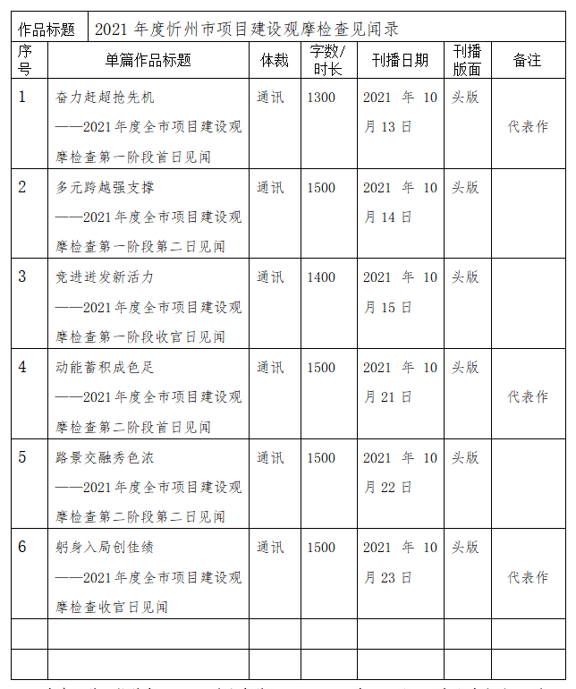 經(jīng)忻州日報社編委會研究決定,以下作品擬推薦申評第三十一屆山西新聞獎,現(xiàn)予以公示。有反對意見者,請將反對意見書面報至統(tǒng)籌部。