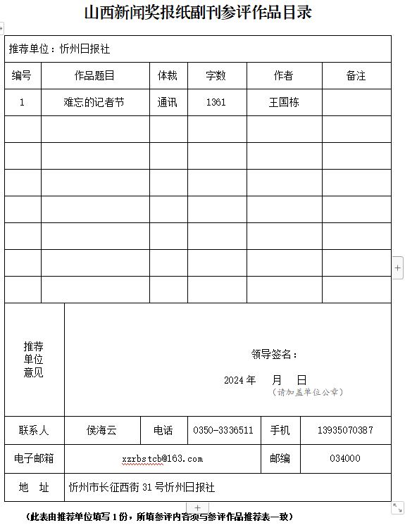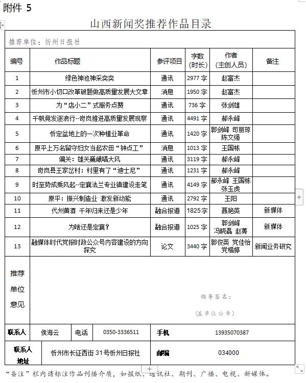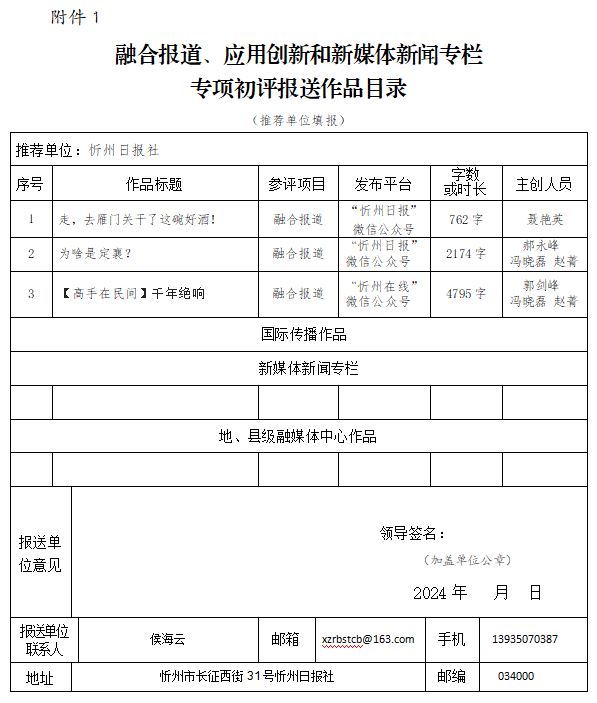 經(jīng)忻州日報社編委會研究決定,以下作品擬推薦申評第33屆山西新聞獎,現(xiàn)予以公示。有反對意見者,請將反對意見書面報至統(tǒng)計考核部。