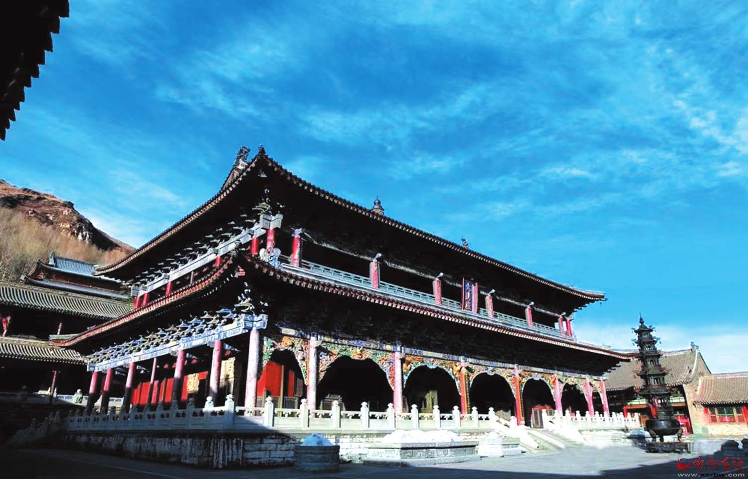 觀音殿后為樓殿,殿內(nèi)有19間石砌窯洞,為僧人寮房。中間的窯洞懸藍底金字匾額,上書“層巒聳翠”,內(nèi)砌石階連通樓上。二樓建有9個殿堂,分別為三霄殿、三皇殿、三官殿、玉皇殿、伽藍殿、毗盧殿、藥王殿、羅漢殿、地藏王殿。樓殿后是壯觀的大雄寶殿,殿中主塑釋迦牟尼佛,此外還有十八羅漢。