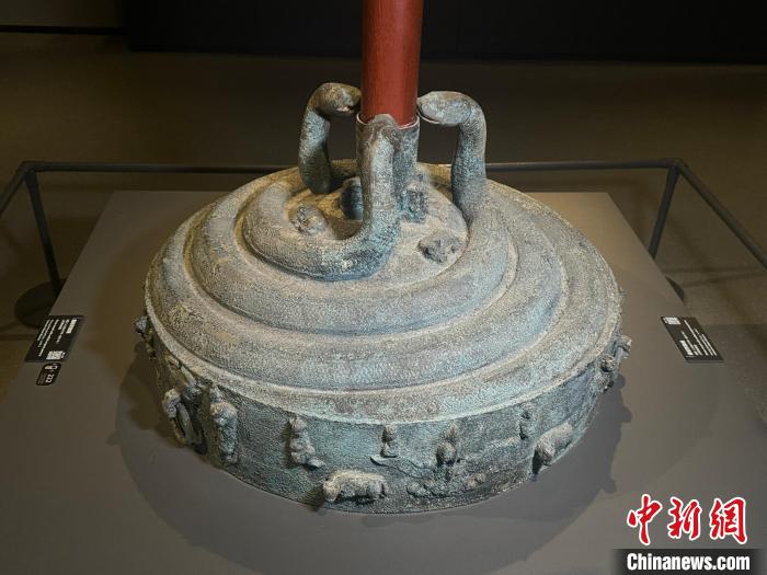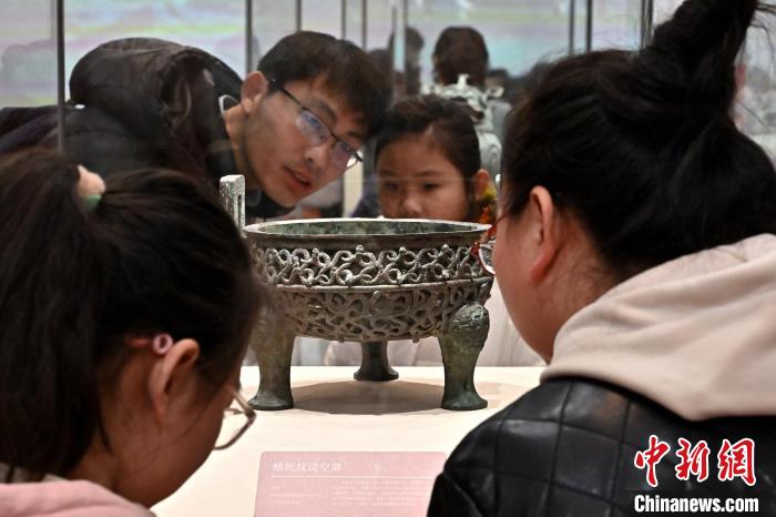 春節(jié)期間,山西博物院推出“尋蛇——藏在山西博物院里的蛇”展覽。圖為1月23日,民眾圍觀館內(nèi)展出的蟠蛇紋鏤空鼎。 中新社記者 韋亮 攝 展廳內(nèi),出土于春秋時期的蟠蛇紋鏤空鼎吸引眾多參觀者駐足圍觀。該鼎分內(nèi)外兩層,三足呈獸蹄形。鼎腹外層為接空蟠蛇紋,表現(xiàn)為頭高昂、身體纏繞似游動的群蛇形象。 “該文物是目前中國所見用‘失蠟法’钖造銅器最早的范例之一,體現(xiàn)了工匠高超的鑄造技術(shù)?!崩钭客┱f。 1月22日至3月2日,山西青銅博物館推出“靈蛇獻瑞——乙巳蛇年生肖文物大聯(lián)展”。工作人員盧文雨介紹,戰(zhàn)國盤蛇鼓座是該館中一件重磅級蛇文物,直徑77厘米,高47厘米,重80公斤,是中國已出土體積和重量較大的青銅建鼓座。
