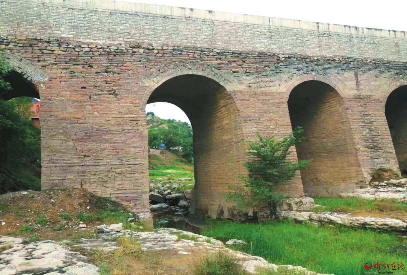 舊縣鎮(zhèn)大澗河上有座磚石連拱七孔橋,又名澗虹橋,為河曲通往保德之要津。建于明初,清順治五年遇特大洪水沖擊曾做補(bǔ)修。舊縣村民說,修橋時(shí)民工萬人參建,食鹽用去12石,用黍米湯加粘土和石灰做漿,以磚石為主體筑成此橋。橋長80米,寬5.7米,高13.3米,七孔跨徑61米,每孔底長10米,高9米,載重量20噸。歷經(jīng)600余年,盡管遇洪峰、暴雨百次,河水溢過橋梁無數(shù)次,但橋基安然無恙,河曲能工巧匠的智慧和技藝令人嘆為觀止。
