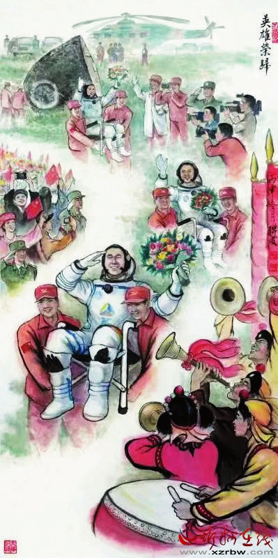 上天攬月喜榮歸,歡慶鮮花映日輝。
