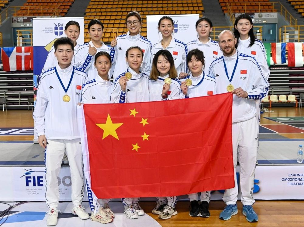 新華社雅典3月9日電 在當(dāng)?shù)貢r(shí)間9日進(jìn)行的2024/25賽季國(guó)際劍聯(lián)女子佩劍世界杯希臘伊拉克利翁站比賽中,中國(guó)隊(duì)一路過(guò)關(guān)斬將摘得團(tuán)體金牌。這是中國(guó)女佩自2011年倫敦站后,時(shí)隔14年再奪世界杯團(tuán)體冠軍。