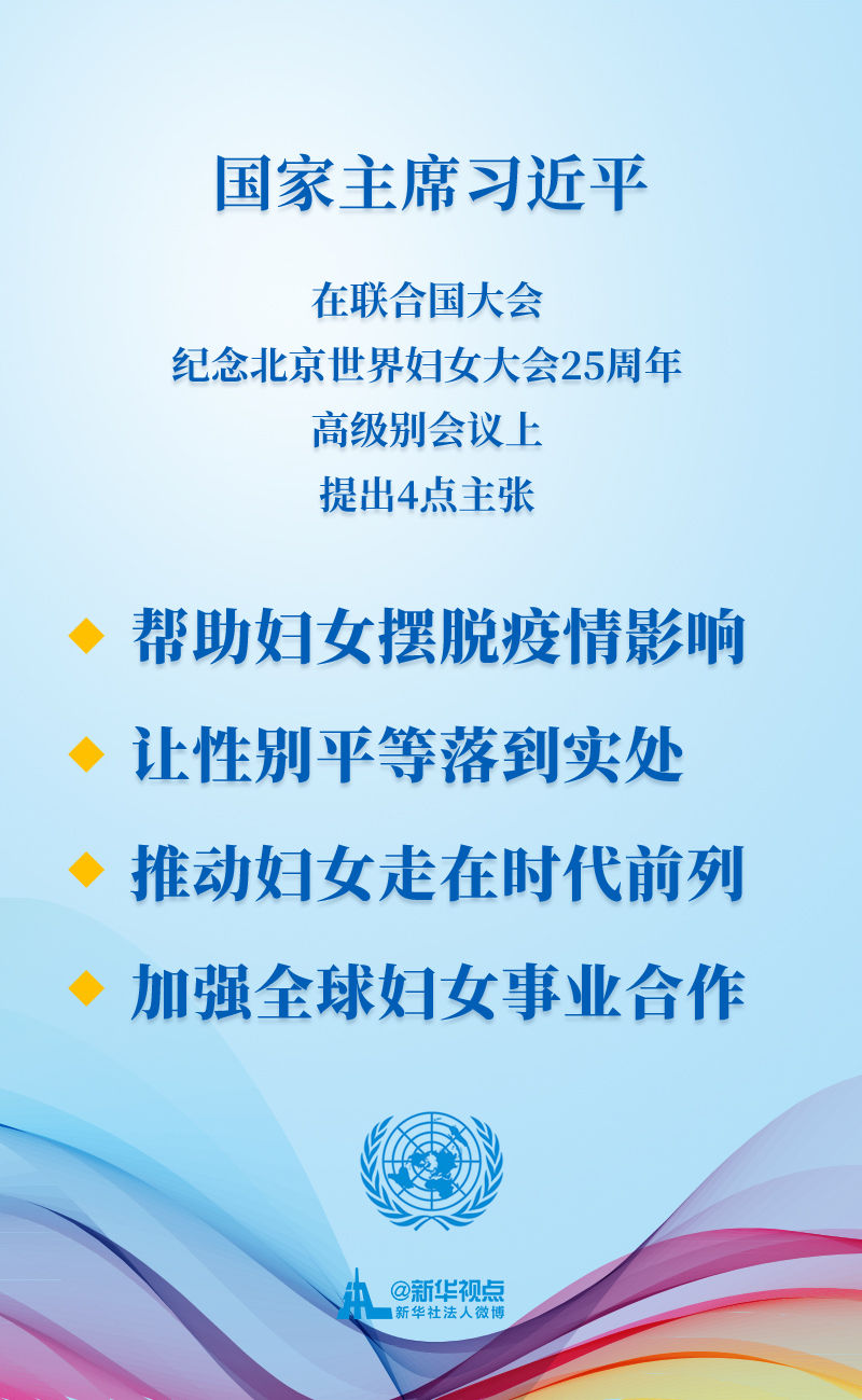 10月1日,聯(lián)合國大會紀念北京世界婦女大會25周年高級別會議舉行,習(xí)近平主席出席會議并發(fā)表講話。