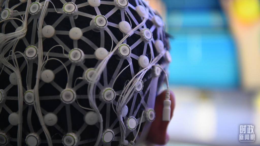 △2026年1月24日,安徽省腦機接口創(chuàng)新發(fā)展大會現(xiàn)場一位穿戴腦機接口設(shè)備的體驗者。(圖/視覺中國)