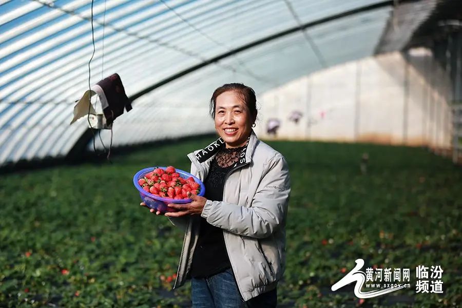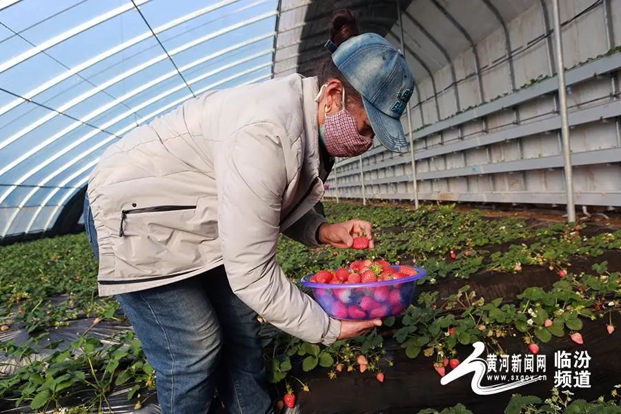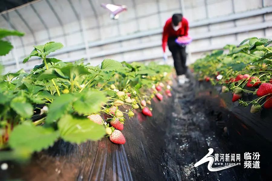 日前,山西省臨汾市堯都區(qū)北練李村果中果采摘園公司,果農(nóng)采摘草莓準備銷售。