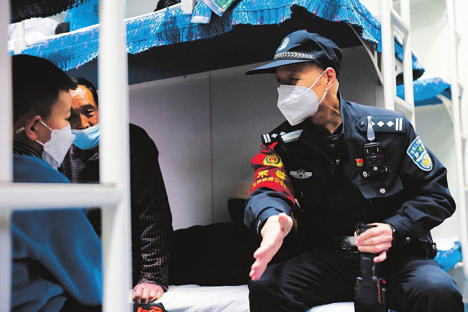 6時20分,列車緩緩駛出,老屈開始對整列車廂進行巡視,在8號車廂,看見有人將羽絨衣掛在衣帽鉤上,老屈現(xiàn)場演示了小偷用自己衣服做遮擋和掩護盜竊的作案伎倆,并叮囑大家看管好自己隨身攜帶的物品,以免丟失。“保障旅客的安全,是乘警的天職,在車上,我們要不斷地對重點部位進行檢查,對旅客進行安全宣傳,尤其是到了春運時候,我更得做好本職工作,讓每一個乘車旅客平安回家。”屈保良說道。