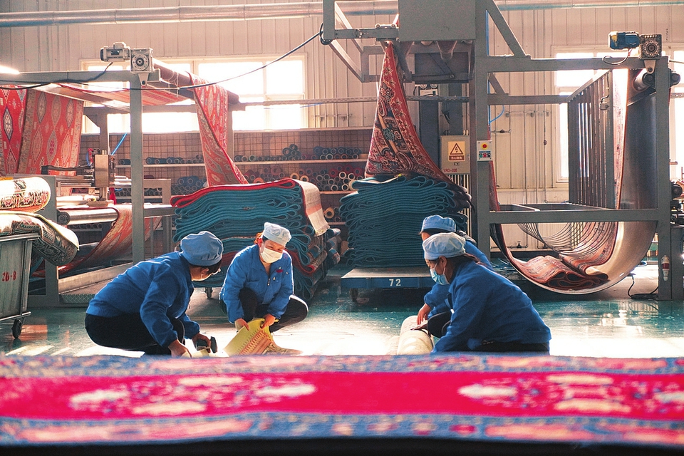 雅瑞地毯公司的廠房里,工人正在趕著完成訂單。山西日報記者李家鳴攝