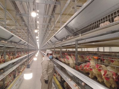 穿上無(wú)菌服,陳璐帶記者參觀雞舍。墻面是彩鋼夾芯板,耐腐、防火,保溫性能卓越,有效保障雞舍一年四季溫度恒定。雞籠表面是進(jìn)口鋁鋅合金涂層,顯著降低破蛋率、污蛋率。雞舍內(nèi)安裝有智能環(huán)境控制系統(tǒng),實(shí)時(shí)顯示和控制雞舍內(nèi)溫度、濕度、二氧化碳濃度、光照、通風(fēng)等環(huán)境指標(biāo)?!耙坏┠骋豁?xiàng)指標(biāo)低于或者超過(guò)設(shè)定范圍,系統(tǒng)就會(huì)啟動(dòng)各項(xiàng)設(shè)備,直至指標(biāo)恢復(fù)正常?!标愯凑f(shuō)。