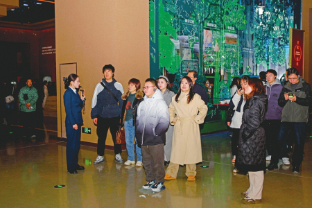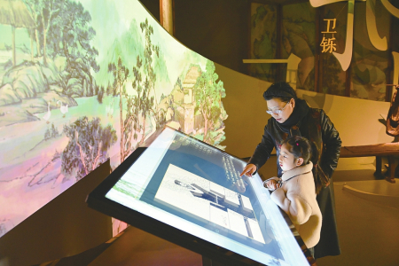 2月8日,運城市河東歷史文化展示中心內(nèi),游客正在數(shù)字互動屏幕前駐足查看歷史資料。楊晨玉攝
