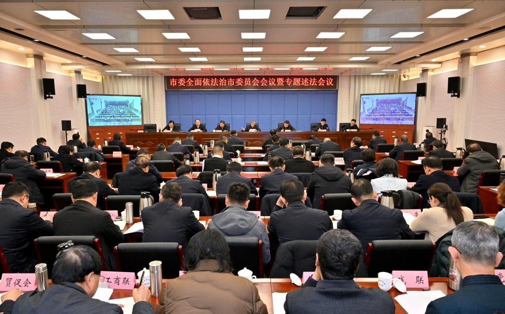 1月30日,市委全面依法治市委員會會議暨專題述法會議召開。會議深入學(xué)習(xí)貫徹習(xí)近平法治思想,認(rèn)真落實黨中央和省委部署要求,在全面總結(jié)工作、分析研判形勢、強(qiáng)化工作舉措的基礎(chǔ)上,認(rèn)真開展黨政主要負(fù)責(zé)人專題述法和“誰執(zhí)法誰普法”履職報告評議,進(jìn)一步統(tǒng)一思想、深化認(rèn)識,壓實責(zé)任、凝聚合力,全力推動法治忻州建設(shè)邁上新臺階。市委全面依法治市委員會主任、市委書記朱曉東出席并講話,市委全面依法治市委員會副主任、市委副書記、市長李建國主持會議。市委全面依法治市委員會副主任、市委常委、政法委書記、宣傳部部長王琳玉,市委常委、秘書長溫建軍,副市長、市公安局局長史洪波,市中級人民法院院長栗向東,市人民檢察院檢察長郭鴻以及市人大常委會秘書長李強(qiáng)、市政府秘書長張艮生、市政協(xié)秘書長王培雄出席會議。