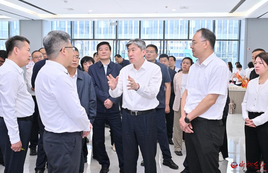 在定襄縣鍛造產(chǎn)業(yè)服務(wù)基地觀摩檢查法蘭專業(yè)鎮(zhèn)大數(shù)據(jù)綜合服務(wù)平臺項目情況。馮曉磊 攝