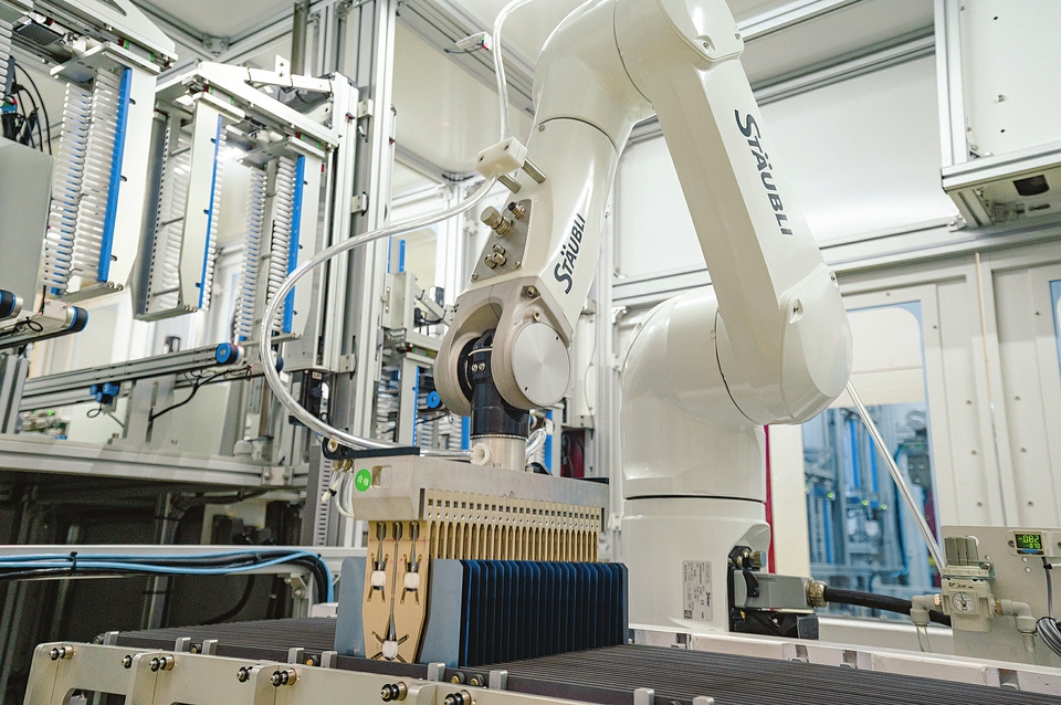 中來(lái)電池智能工廠里的機(jī)械臂正在進(jìn)行自動(dòng)化取放片。圖片由中來(lái)提供