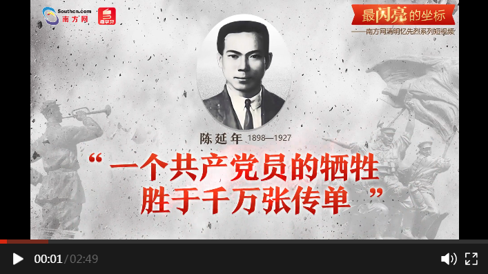 編者按:清明憶英烈,忠魂貫長空。4月1日至5日,南方網(wǎng)、粵學(xué)習(xí)客戶端策劃推出“最閃亮的坐標”系列短視頻,通過挖掘廣東革命烈士的光輝事跡,與大家一起緬懷英烈、學(xué)習(xí)英烈。今天推出第一篇《陳延年:一個共產(chǎn)黨員的犧牲勝于千萬張傳單》。