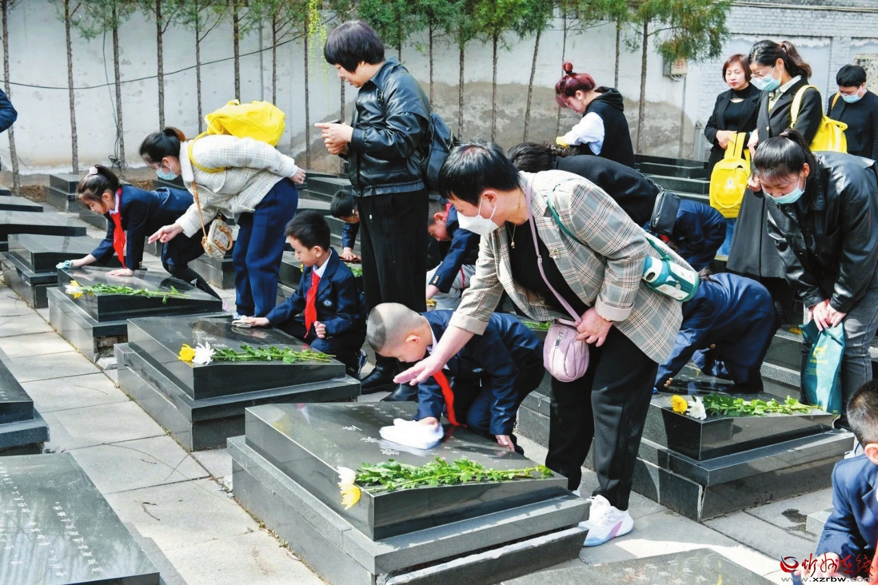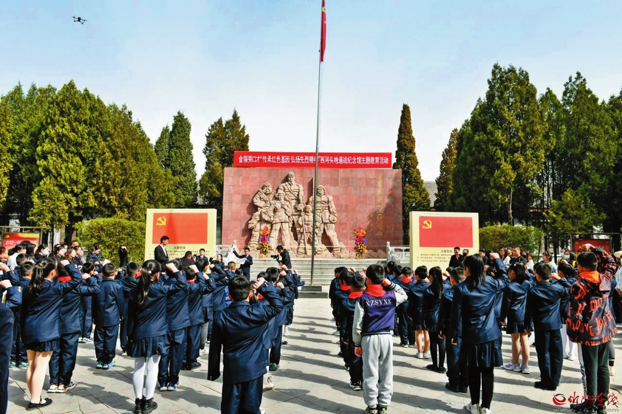 在西河頭地道戰(zhàn)紀(jì)念館英雄紀(jì)念碑前,大家聆聽革命先烈故事,向烈士紀(jì)念碑敬獻(xiàn)花圈,寄托對革命先烈的無限哀思和敬仰之情。 本報(bào)通訊員攝