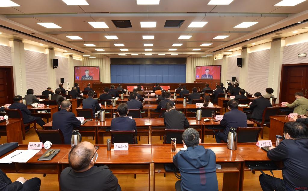 市領(lǐng)導(dǎo)集中收聽收看大會實(shí)況直播。馮曉磊 攝