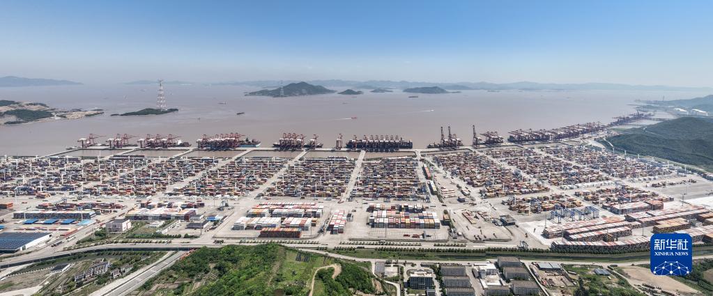 5月9日拍攝的寧波舟山港穿山港區(qū)(無(wú)人機(jī)全景照片)。新華社記者 翁忻旸 攝