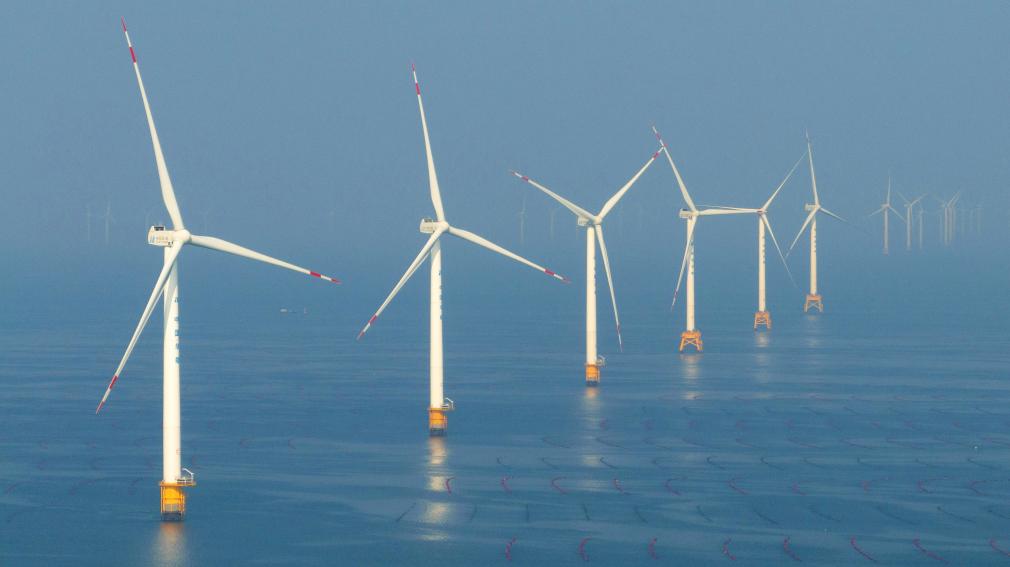 距離大連莊河市海岸線20多公里的黃海海域,300多座高約百米的“大風(fēng)車”聳立在藍(lán)天碧海間,巨大的風(fēng)電機(jī)組葉片不停轉(zhuǎn)動(dòng)。莊河市發(fā)展和改革局副局長吳靜說:“目前,莊河已有4個(gè)海上風(fēng)電項(xiàng)目并網(wǎng)運(yùn)行,年發(fā)電量可達(dá)27.3億度?!?/p>