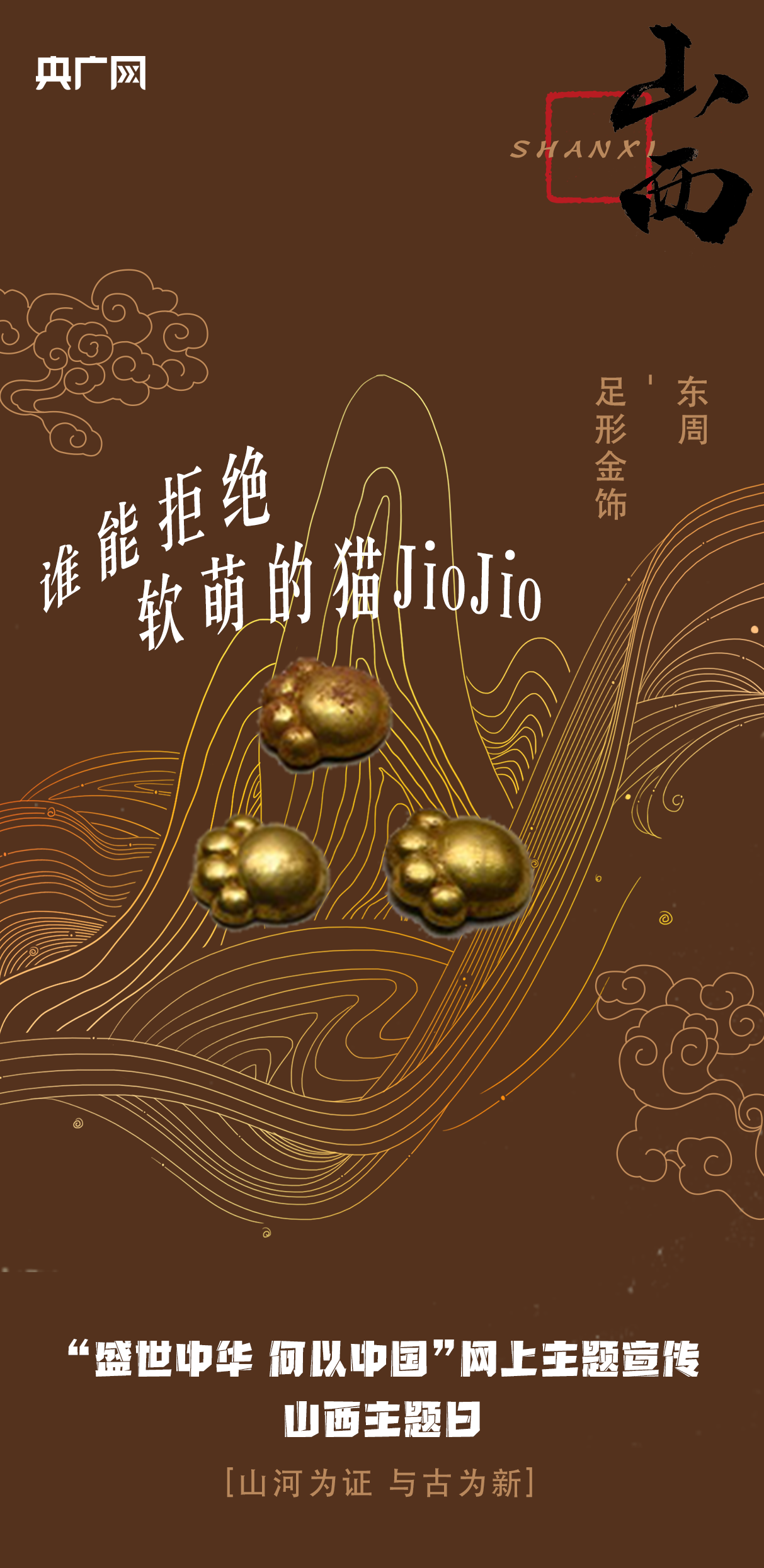 東周足形金飾。這組“貓爪”金飾文物出土于山西運(yùn)城垣曲北白鵝墓地,距今已有2700多年的歷史,一共五件,或?yàn)榕宕髟谘g的飾物。該金飾大小和小拇指指甲蓋相當(dāng),四個(gè)“腳趾”和一個(gè)“肉墊”的造型簡(jiǎn)直就是貓爪復(fù)刻。