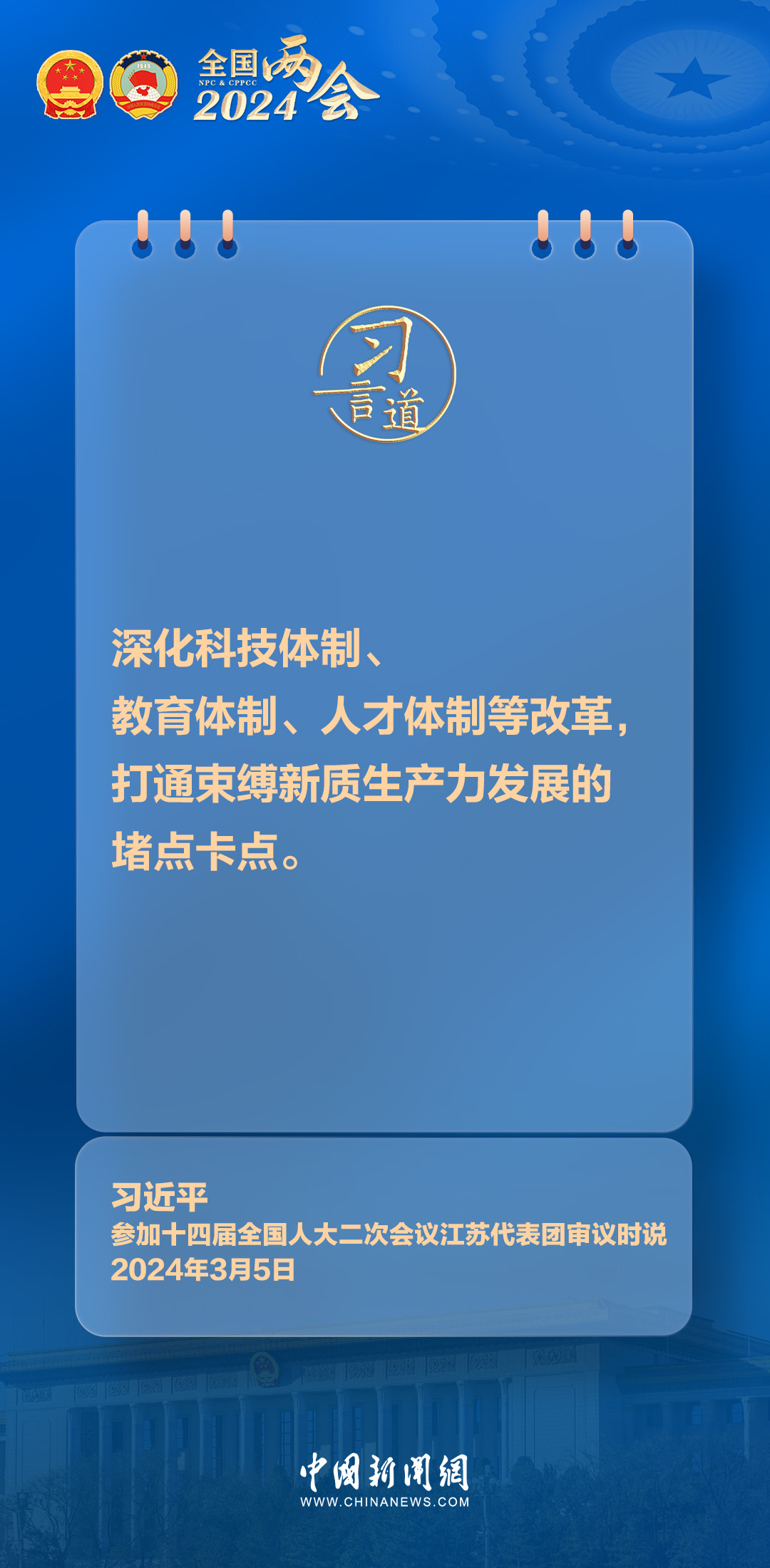中共中央總書記、國家主席、中央軍委主席習近平5日下午參加他所在的十四屆全國人大二次會議江蘇代表團審議。習近平指出——