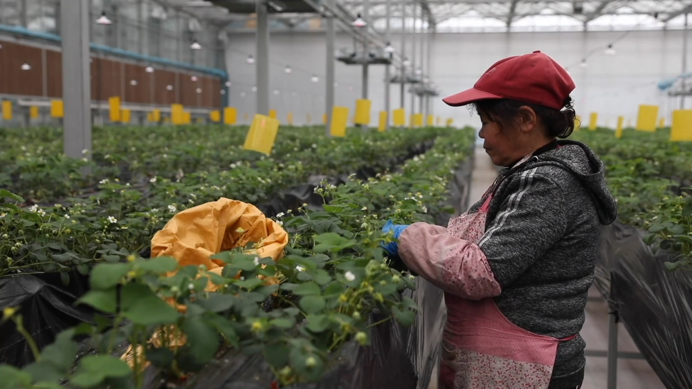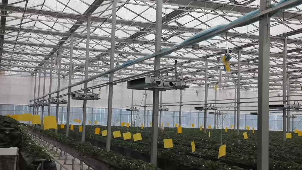 智慧農(nóng)場(chǎng)玻璃溫室現(xiàn)共種植三個(gè)品種、八萬株草莓,均為自主繁育的草莓苗??茖W(xué)種植促進(jìn)了豐產(chǎn),兩座玻璃溫室均可實(shí)現(xiàn)一年四季連續(xù)生產(chǎn)。
