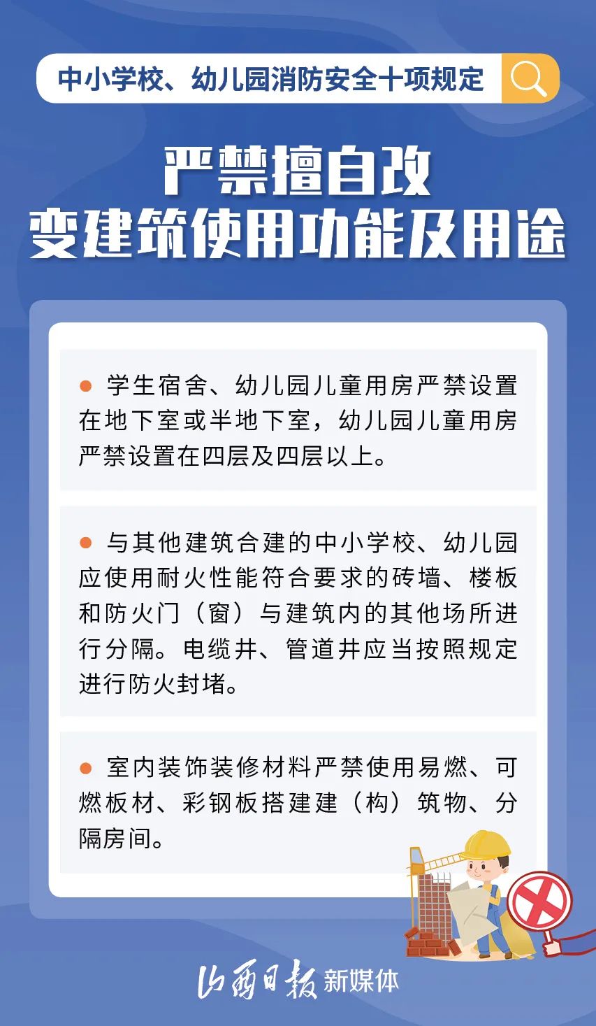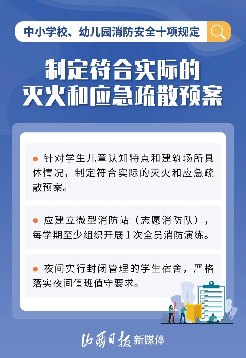 為加強中小學校、幼兒園消防安全管理,近日,教育部、國家消防救援局研究制定了《中小學校、幼兒園消防安全十項規(guī)定》,具體規(guī)定內容如下。