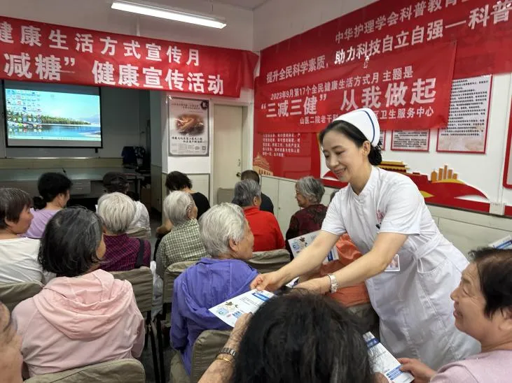 除了慢病管理工作室,山醫(yī)大二院社區(qū)還聯(lián)合轄區(qū)山醫(yī)大二院老干部科、杏花嶺社區(qū)衛(wèi)生服務(wù)中心,開設(shè)健康知識講座,邀請山醫(yī)大二院專家為老年群體講授“減鹽、減油、減糖”、壓瘡專業(yè)護理、高血壓保健等方面的健康知識。