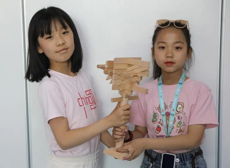 在古建小課堂斗拱搭建中,省博物院老師選取中國古代建筑最關(guān)鍵也是最有特色的斗拱為原型,指導(dǎo)同學們制作了五臺山佛光寺唐代斗拱模型。不僅可以了解山西古代輝煌燦爛的建筑文化,還可以親自動手,體驗唐代斗拱的搭建,感受古代木作匠師的智慧,增進對中國古代建筑文化的了解。