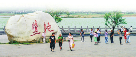 5月19日,游客在運(yùn)城市鹽湖觀景臺(tái)參觀游覽。閆鑫攝