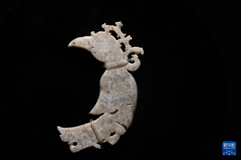 這是7月28日在重慶中國三峽博物館舉行的“玉出大江——長江流域史前玉器特展”上拍攝的肖家屋脊文化玉鳳。(新華社記者 黃偉 攝)
