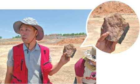 白志君正在向大家展示手中的化石。本報通訊員攝