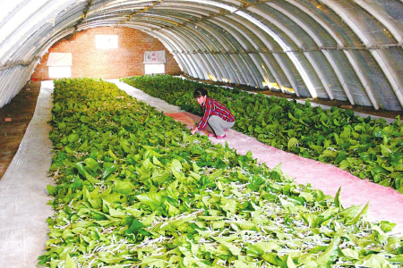 發(fā)展到現(xiàn)在,大棚養(yǎng)蠶已成為陽城縣群眾普遍采用的實用技術,因大棚建在桑園邊,節(jié)省了桑葉的運輸成本,同時采用“地面條桑育”,一日給桑1次—2次,不僅喂養(yǎng)次數(shù)減少,而且便于方格蔟自動上蔟,減輕了勞動強度,減少了養(yǎng)蠶用工,可提高工效50%。
